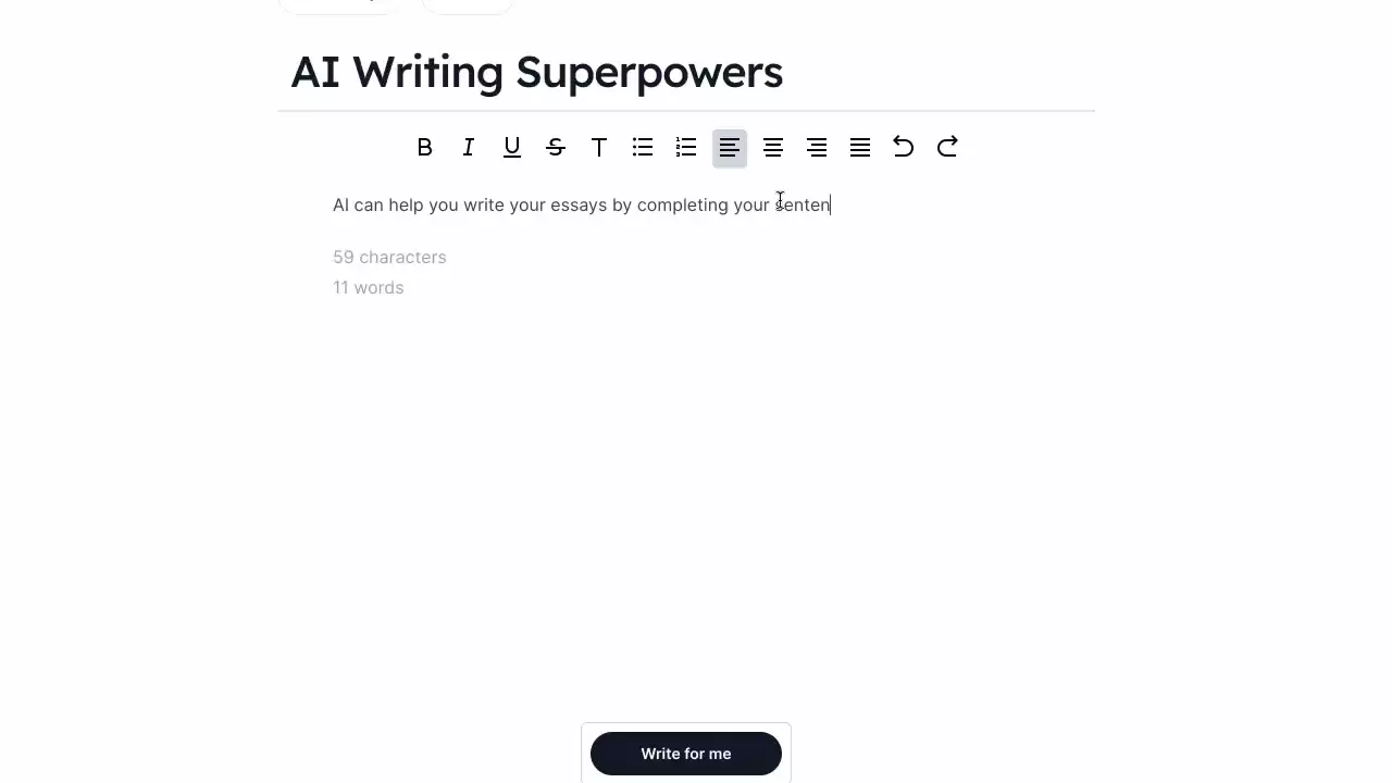 Start a sentence or a paragraph and have the AI complete it for you in your style of writing.